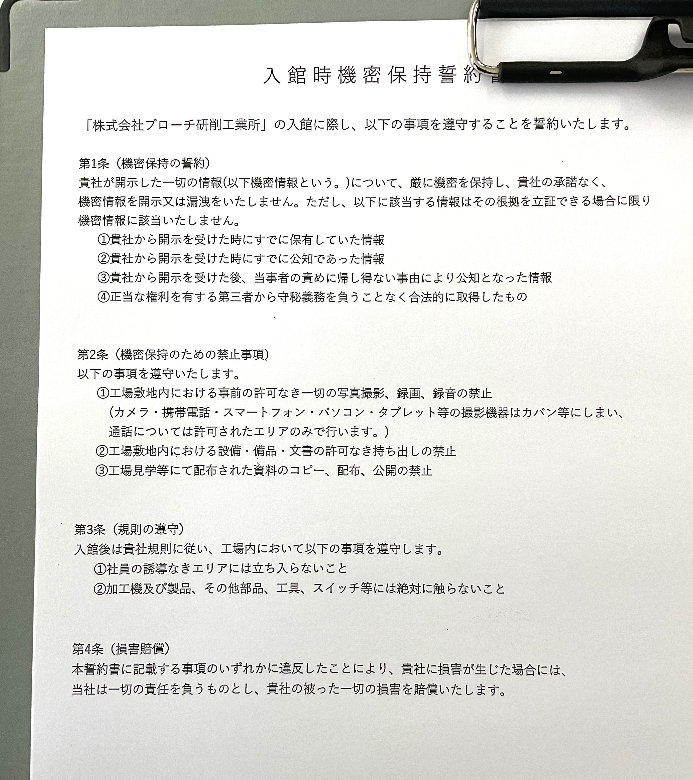 左側には、「工場内を許可なく写真撮影・録音はしません」