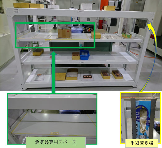 急ぎ品を置くスペースを作り、備品の置き方を工夫しました。