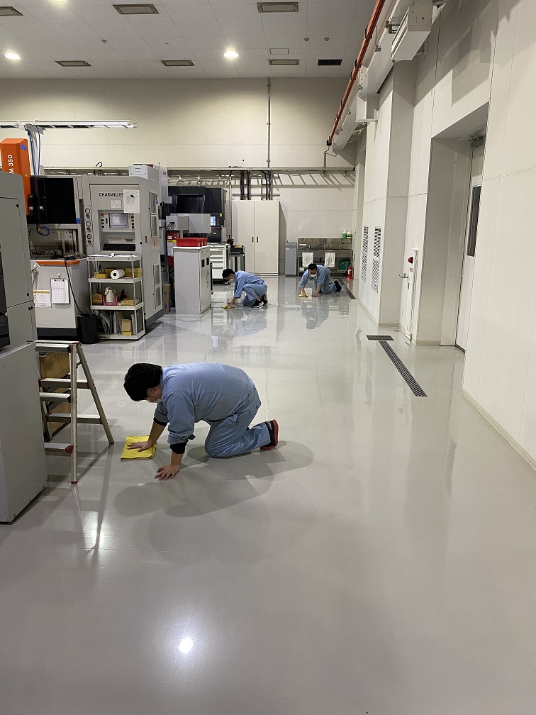 清掃の「方法」を見直し、ほぼ全員が床の拭き掃除を行っています。