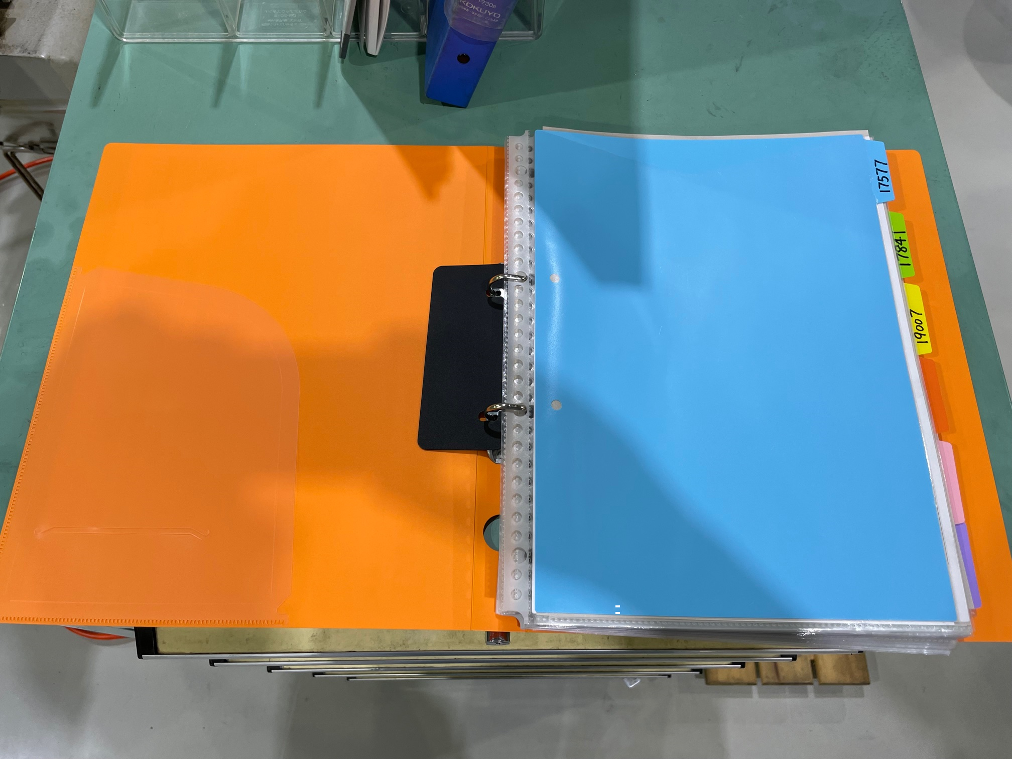 記入することが多い書類はバインダーにセットして、記入がしやすいようにしました。