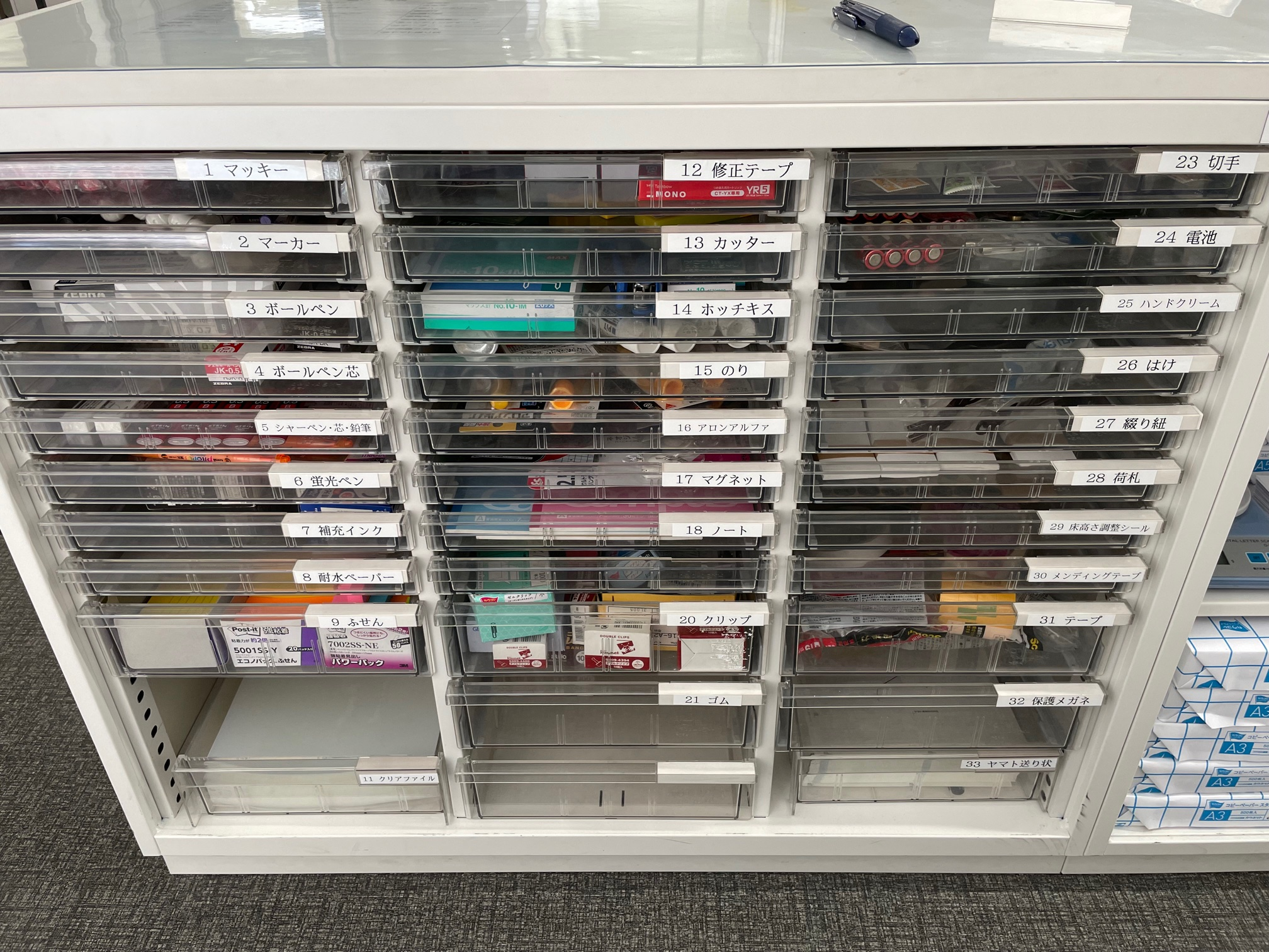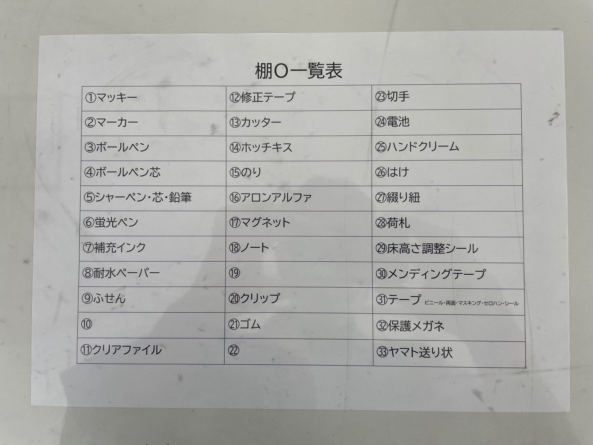 ①すべての引き出しに番号を振り、何が入っているか明示を行いました。